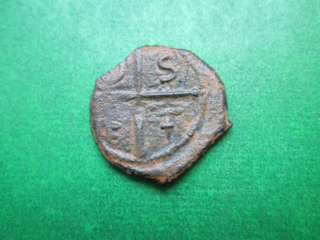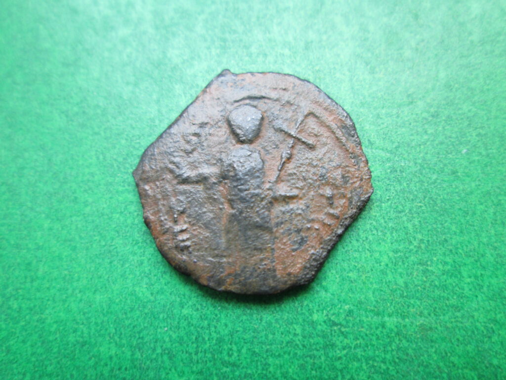 Fot. 5. Antiochia, Tancredi d’Altavilla 1101 – 1112, folis ( brąz odlewany ),20,8mm, 2,46g. Aw.: Św. Piotr, S – PE Rew.: Krzyż, D/S/F/T – ( od Domine Salvum fac Tancredum )