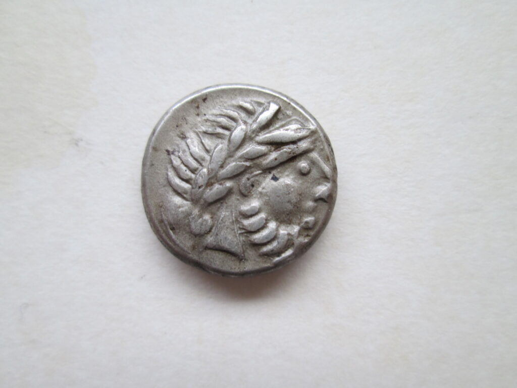 Fot. 7. Grecja – Euboea, nimfa Histiaia, 196 – 146 p. n. Chr., tetrobol, srebro, 15 mm, 2,3g.