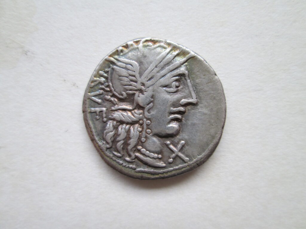 Fot. 6 Republika Rzymska, konsul Qwintus Minucius Rufus, 122 r. p. n. Chr., denar, srebro, 19 mm, 3,89g.
