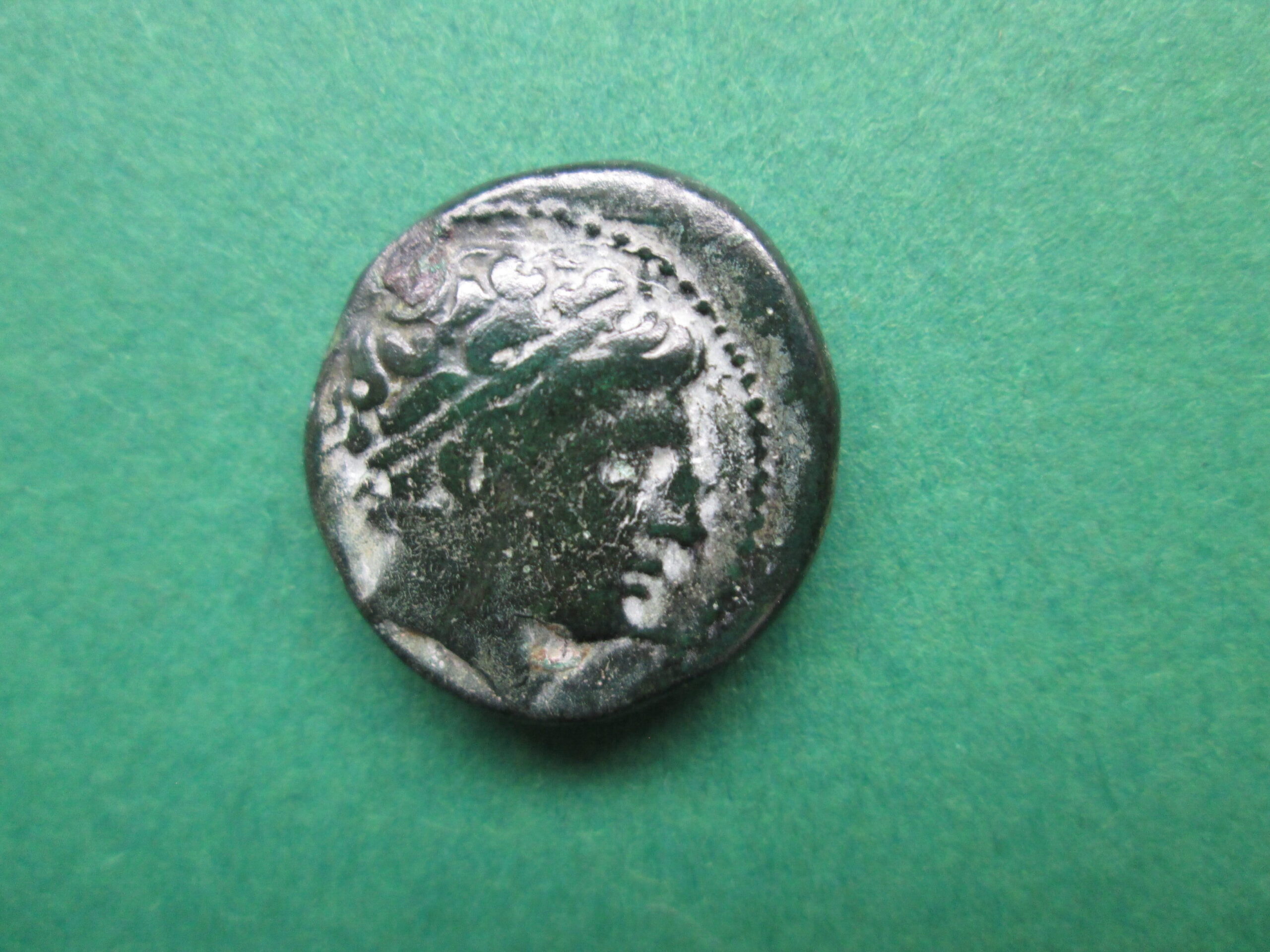 Aw: Głowa brodatego Zeusa. Rw: Koń, grzywa z pierścieni.