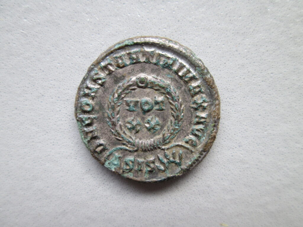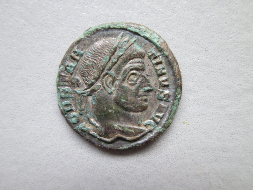 Fot. 9. Cesarstwo Rzymskie, Konstantyn I Wielki 307 – 337, follis 321 – 324, Siscia, brąz srebrzony, 18 mm, 2,73g.