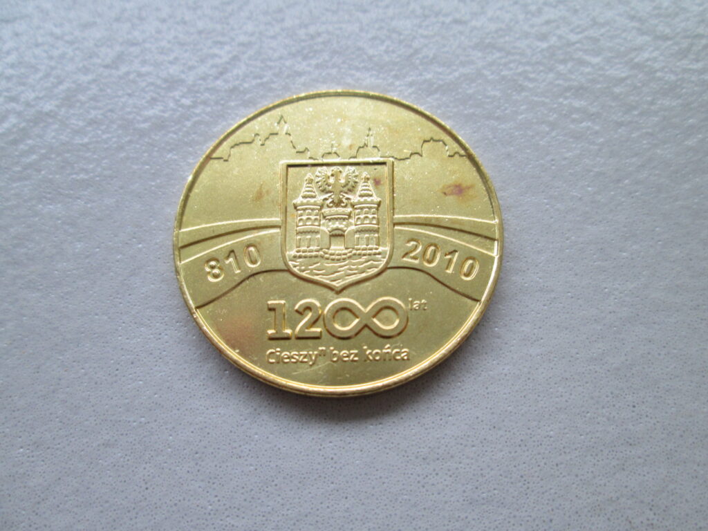 Po kilku kolejnych zmianach wyodrębniono Księstwo Cieszyńskie, które objął w roku 1290 prawnuk Mieszka Plątonogiego – Mieszko I, którego uważa się za założyciela dynastii Piastów Cieszyńskich. Pisząc o Śląsku Cieszyńskim należy wspomnieć jak powstał Cieszyn, który jest jednym z najstarszych miast polskich. Dzieje Cieszyna sięgają IX w. i są związane z najważniejszym grodem plemienia Gołęszyców. Zalążkiem Cieszyna jest Góra Zamkowa gdzie odkryto najstarsze ślady osadnictwa sięgające VI – V w. przed Chrystusem oraz gród we wsi Podobora ( część Kocobędza – leżąca na północnych peryferiach czeskiego Cieszyna ), zwany Starym Cieszynem lub Cieszyniskiem. Po zniszczeniu Starego Cieszyna przez wojsko wielkomorawskie w II poł. IX wieku zbudowano nowy gród obronny na Górze Zamkowej – po prawej stronie Olzy. Warstwę osadniczą z ok. 810 roku przyjęto jako początek założenia cieszyńskiego grodu. W związku z tym w roku 2010 obchodzono 1200 rocznicę jego istnienia. Wyemitowano z tej okazji monetę pamiątkową o nominale 7 bolków ( fot. 17 ) honorowaną na obszarze Cieszyna do 31.12.2010 r.
