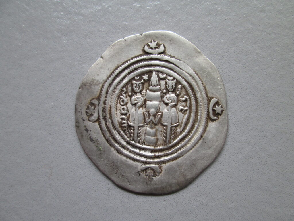 Fot. 2. Persja, Khustro II, dynastia Sasanidów, dirhem, mennica Biszapur 591 – 628, 32 mm, 3,4g.