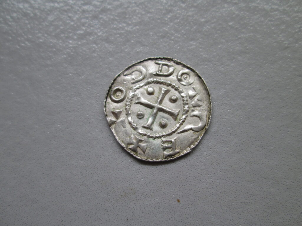 Fot. 9. Niemcy, Dolna Saksonia, Otto III 983 – 1002 r., denar, mennica Dortmund, 18 mm, 1,28g. Awers: ODDO REX Rewers: THERTMANNI