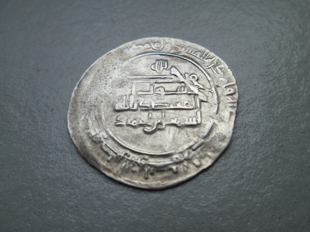 Fot. 5. Kalifat Bagdadu, kalif z rodu Sasanidów al – Muktafi billach 902 – 908 r., emir Ismail ibn Ahmad 892 – 907 r., dirhem, mennica Samarkanda 902 – 903 r., 26 mm, 2,93g.