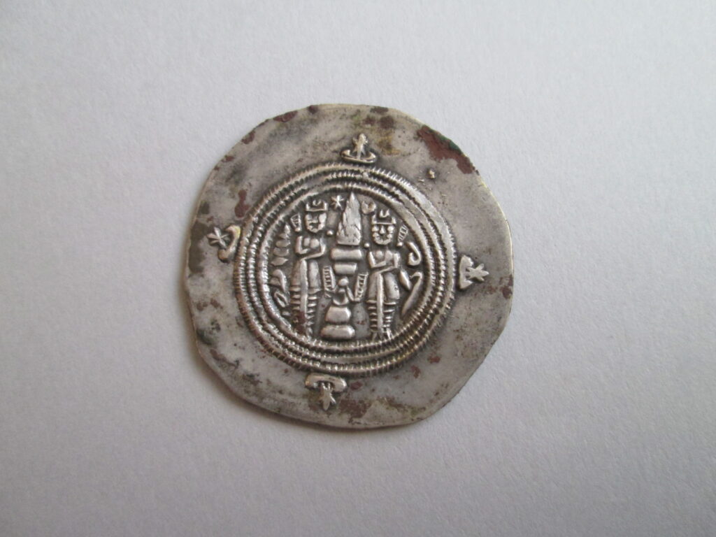 Fot. 2. Persja, Khusro II, dynastia Sasanidów, dirhem, mennica Biszapur 591 – 628, śr. 32 mm.