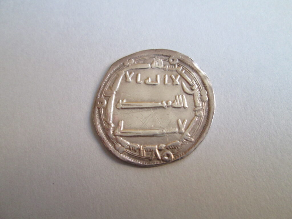 Fot. 3. Arabia, al – Mansur, dynastia Abbasydów, dirhem, mennica Madinat al – Salam 769 rok, śr. 25 mm, 2,84 g.