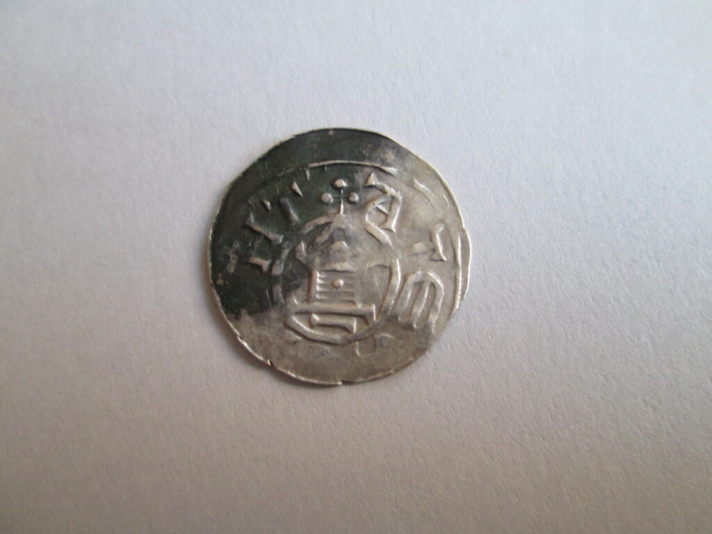 Fot.5. Niemcy, Bawaria, ks. Henryk IV Święty 995 – 1002, denar, mennica Ratyzbona ( Regensburg ), śr. 20mm, 1,34g. Aw. : HENRICVS DVX ( wspak ) Rew.: REGINA CIVITAS, w środku kapliczki skrót imienia mincerza VVIC