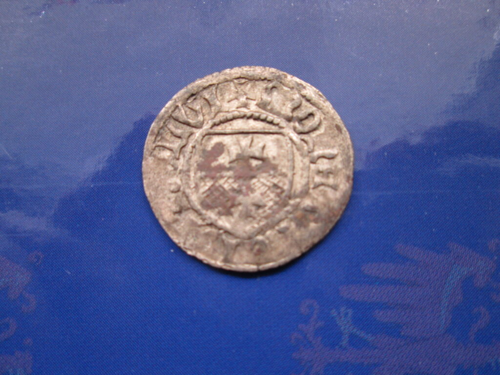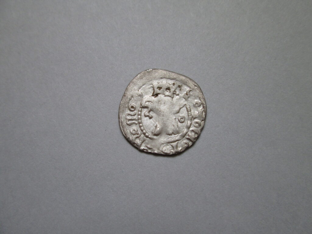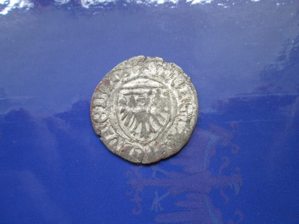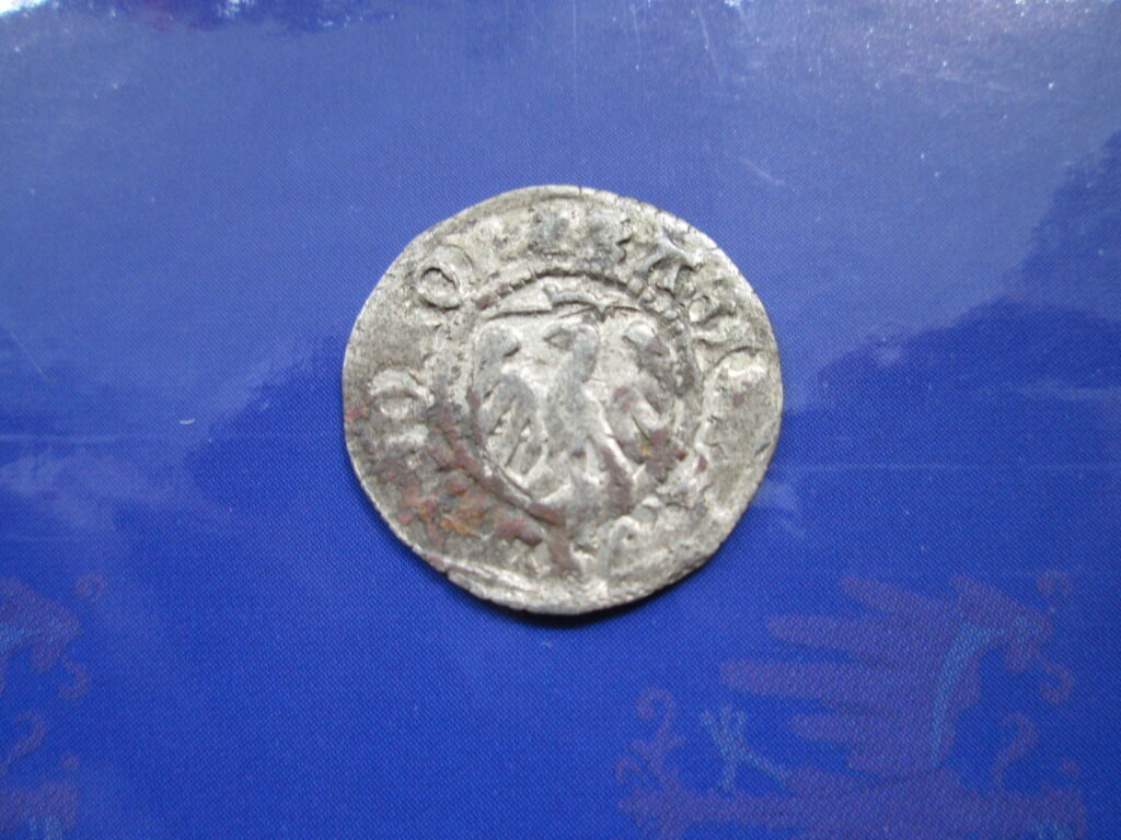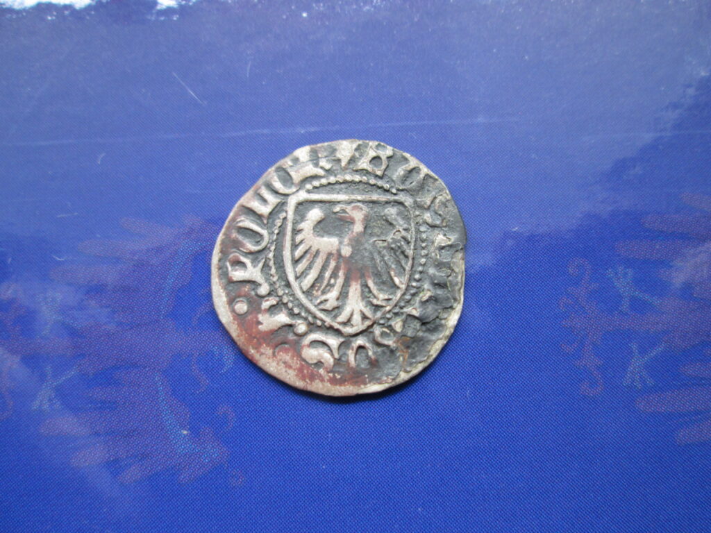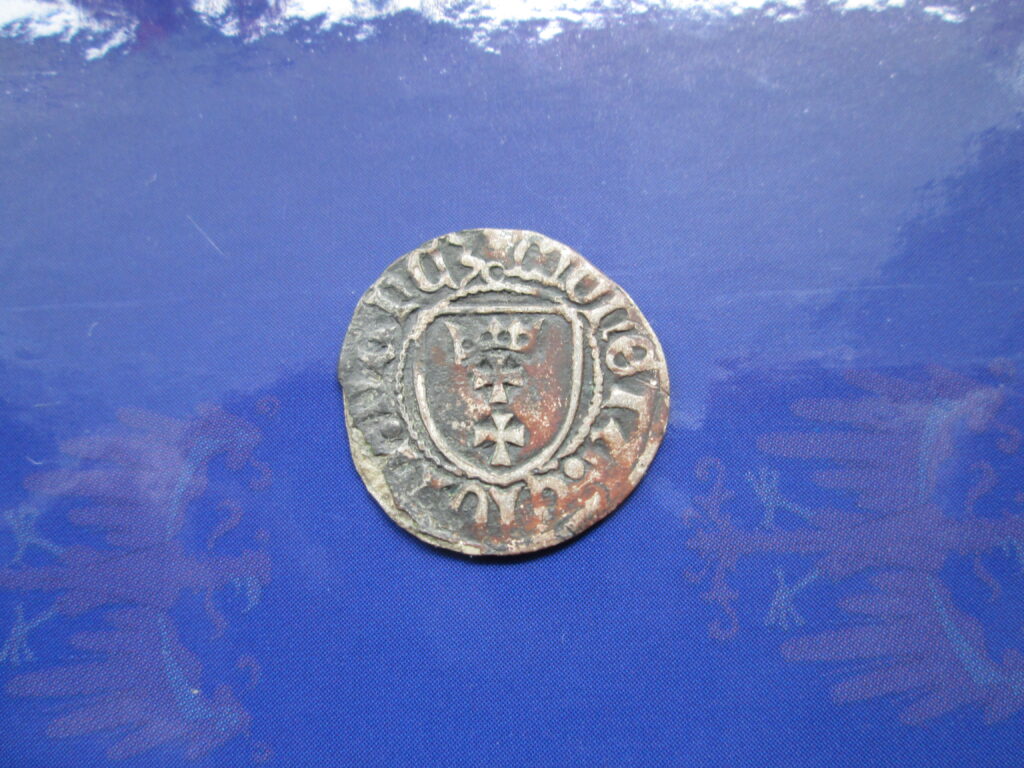 Fot. 22. Polska, Prusy Królewskie, Kazimierz Jagiellończyk, mennica Gdańsk 1457 – 1492 (?) , śr. 20 mm, ok. 1,3g. Aw.: Orzeł, KASIMIRVS R POLONI Rew.: Dwa krzyże pod koroną, MONETA CIVIT DANCZ
