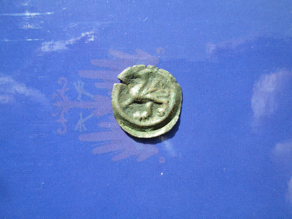 Fot. 12. Pomorze Wschodnie, brakteat, Sambor II, mennica Tczew 1227 – 1278, śr. 12-15 mm, 0,2g. Aw. Gryf kroczący w lewo.