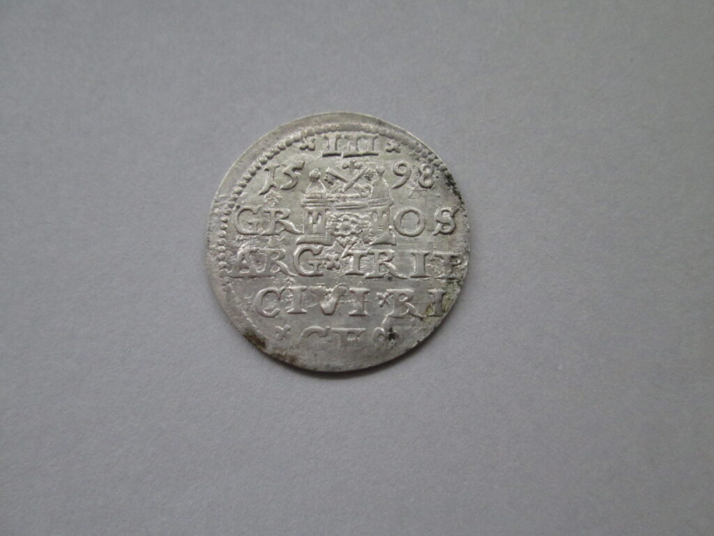 Fot. 30. Polska, Inflanty, Zygmunt III Waza, trojak, mennica Ryga 1598, śr. 21mm, 2,4g Aw.: Popiersie króla, SIG III D G REX PO D LI Rew.: III 1598, herb Rygi, GROS ARG TRIP CIVI RIGE