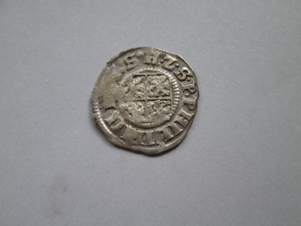 Fot. 33. Pomorze Zachodnie, Filip Juliusz, szeląg podwójny, mennica Nowopole 1617, śr.21 mm, 1,7g Aw.: Czteropolowa tarcza herbowa, PHILIPPUS IUL H.Z.S.P Rew.: Monogram DS, RECTE FANE METUAS